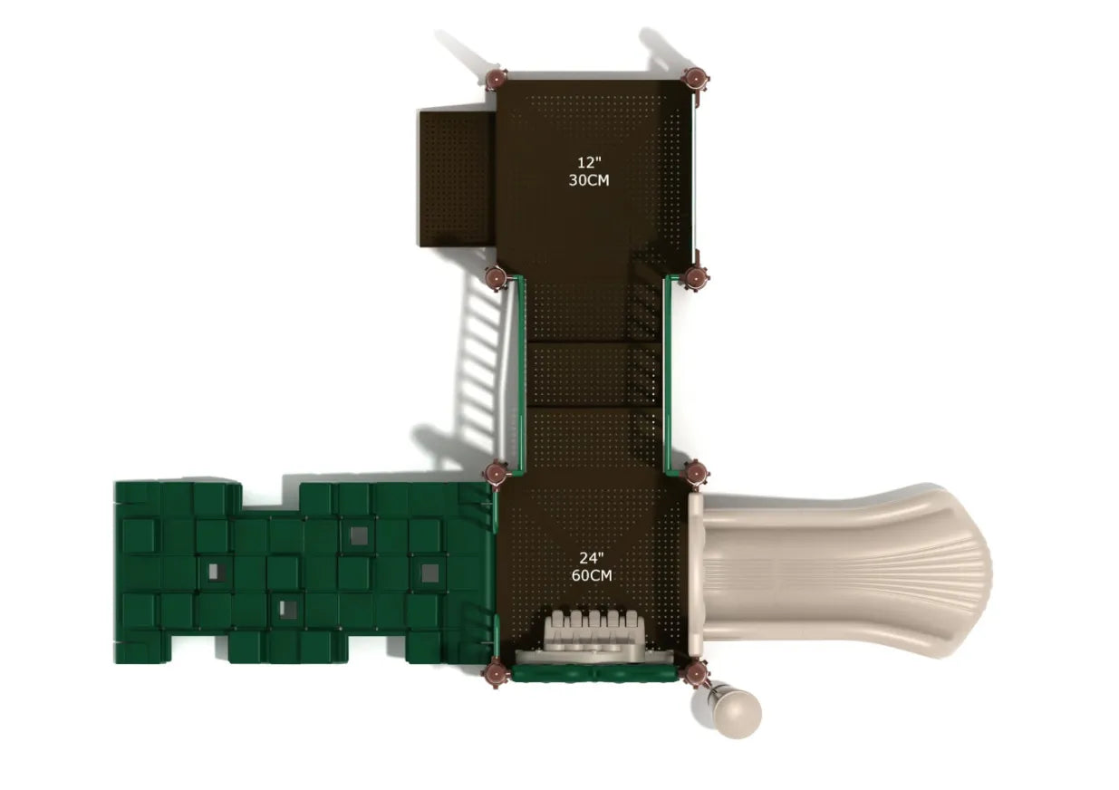 The Bisbee Play System is a safe, age-appropriate playground designed specifically for children ages 6–23 months, giving the tiniest explorers a place to play confidently alongside older peers. Its standout Transfer Station allows toddlers of all abilities to access the structure easily, making Bisbee an excellent choice for parks, daycares, and mixed-age play areas. Once on the platform, little ones can enjoy interactive features such as the Space Panel, Chime Panel, and Single Drum, which support early cognitive development, sensory exploration, and musical creativity.