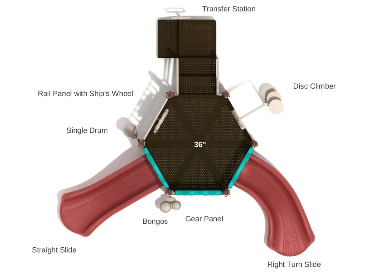 The main feature of the Boulder is the large hexagon-shaped upper deck. This spacious platform allows multiple children to interact and play together, making it a great place for collaborative and imaginative play. Whether they’re pretending to captain a ship, exploring space, or embarking on an adventure, the Ship’s Wheel mounted on the Rail Panel adds a real sense of excitement, giving kids the chance to steer their imaginary vessel.