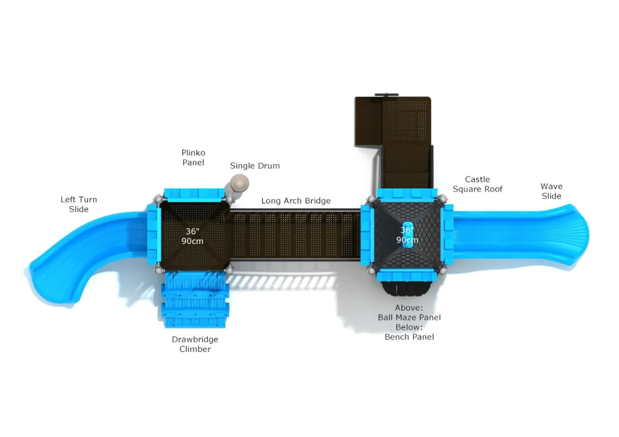 Exciting slides and panels: At the top, kids are met with two thrilling slides and interactive panels. On one side, the Left Turn Slide adds a fun tilt on the way down, while the Wave Slide on the other side bounces kids as they ride, creating extra excitement.