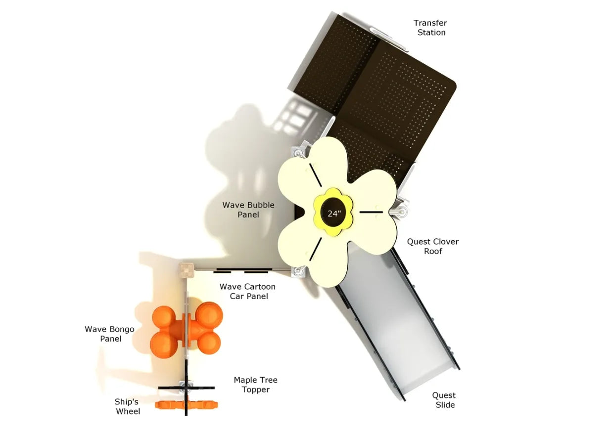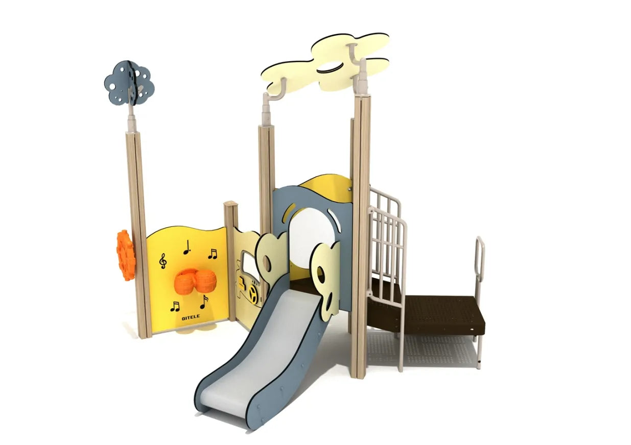 Whether they're racing down the fun-sized slide, climbing up via the accessible transfer station, or drumming out rhythms on the bongo panel, Columbian Spruce creates an enriching, multisensory experience that keeps kids coming back for more.