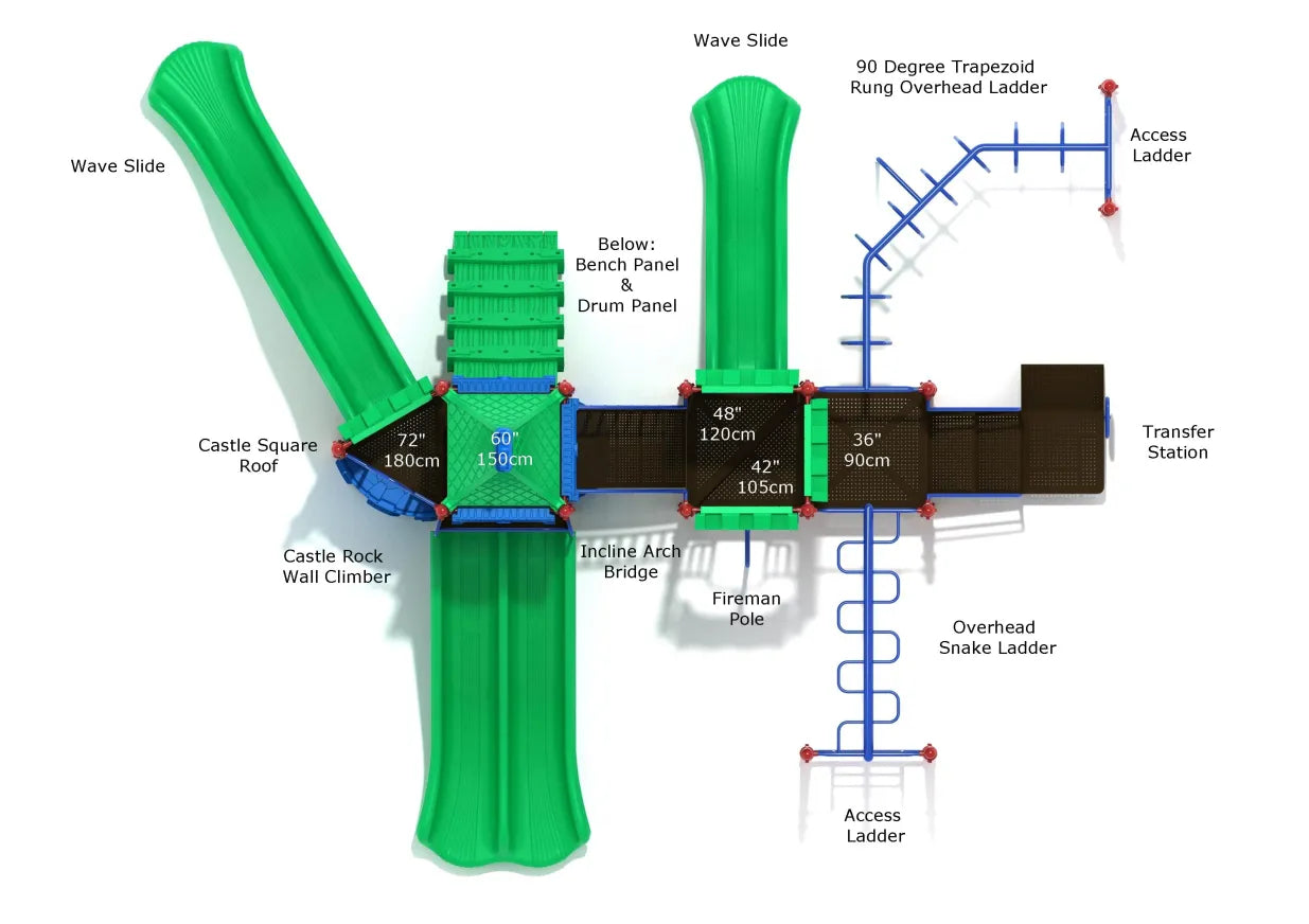 The Forbidden Fortune is a captivating, castle-inspired playset that’s sure to become the centerpiece of any playground. With its towering walls and thrilling design, it’s a play structure that stands out, offering kids a level of excitement that goes beyond the ordinary.