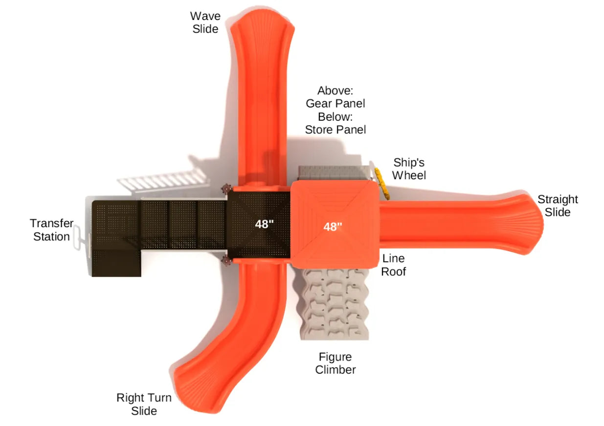 The Frederick Play System is a fantastic addition to any playground, offering endless entertainment and opportunities for children to develop both physical and social skills. With its variety of slides, the hardest decision children will face is choosing which one to race down first. The Wave Slide offers a fun, bumpy ride down, while the Right Turn Slide adds an exciting twist to their journey, and the Straight Slide provides a quick and thrilling descent to the ground.