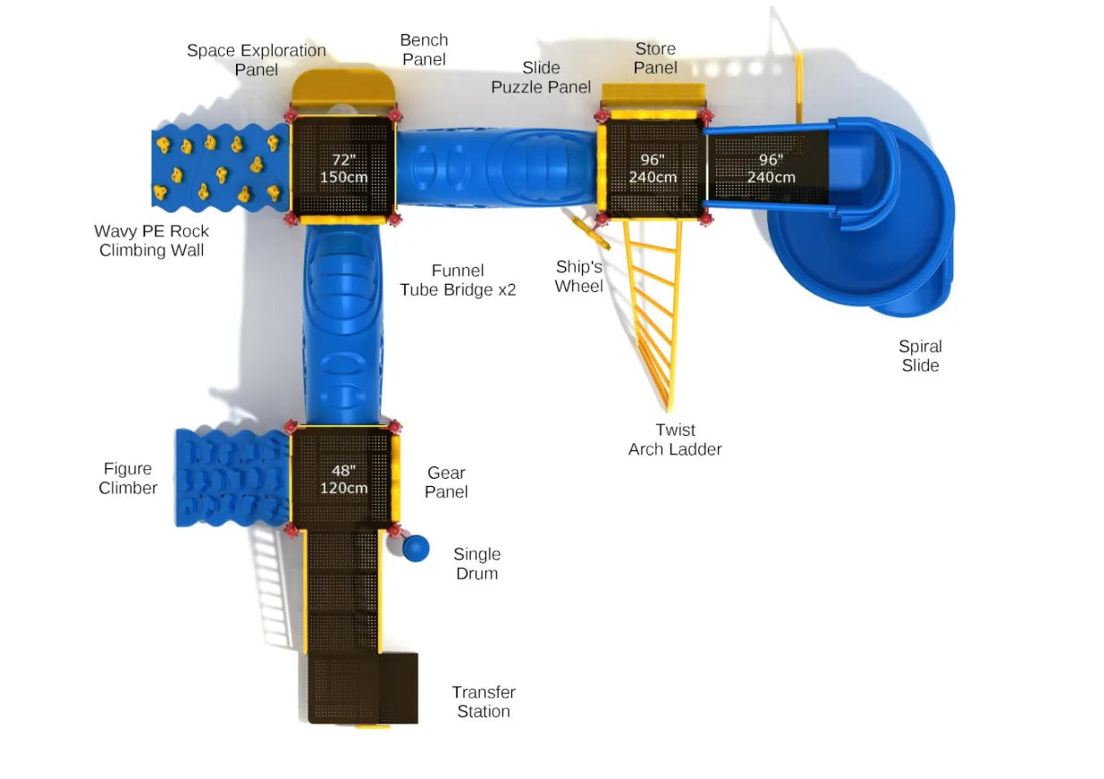 Figure Climber & Wavy PE Rock Climbing Wall: These climbing features offer a true test of strength, agility, and determination. Kids can create friendly competitions, time themselves, or team up with friends to see who can reach the top the fastest!