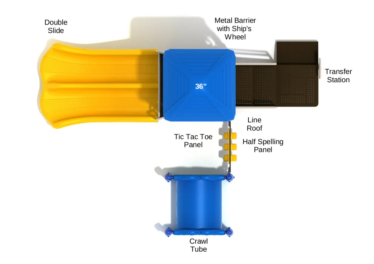 For easy access, the Transfer Station provides a simple way for kids to reach the deck, ensuring that everyone can join in the fun. Once they’re on top, the Tic Tac Toe Panel invites kids to engage in friendly competition with their peers, honing their strategy and social skills while having a blast.