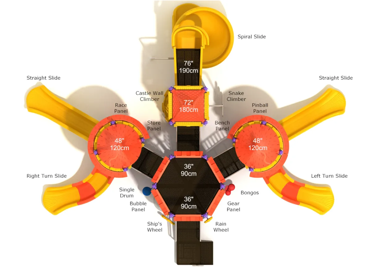 The Kingdom's Keep is a playset masterpiece, designed to captivate and entertain with its sprawling layout that spreads across five directions, each leading to a thrilling slide. Perfect for crowded playgrounds, it ensures every child can join in on the action and get plenty of ride turns.
