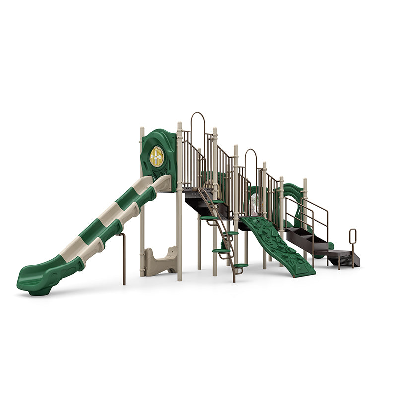 Embark on a journey of fun and adventure with the Wisdom Nonny Playground Structure, a thoughtfully designed play system tailored for children aged 5 to 12. With its sleek, space-efficient design and an array of exciting features, the Nonny structure delivers hours of active play and creative exploration. Children can scale the dual-height Rock Climbers, race down the towering 6ft Sectional Slides, or spark their curiosity at the interactive World Map and Gears Panels.  The Nonny structure’s compact yet dynamic layout makes it ideal for schools, parks, and community spaces. Its inclusive design ensures every child can join in the excitement. With sensory elements like the Rain Wheel and thoughtful resting spaces like the Saddle Seat, this structure seamlessly blends adventure and comfort for an unforgettable play experience.
