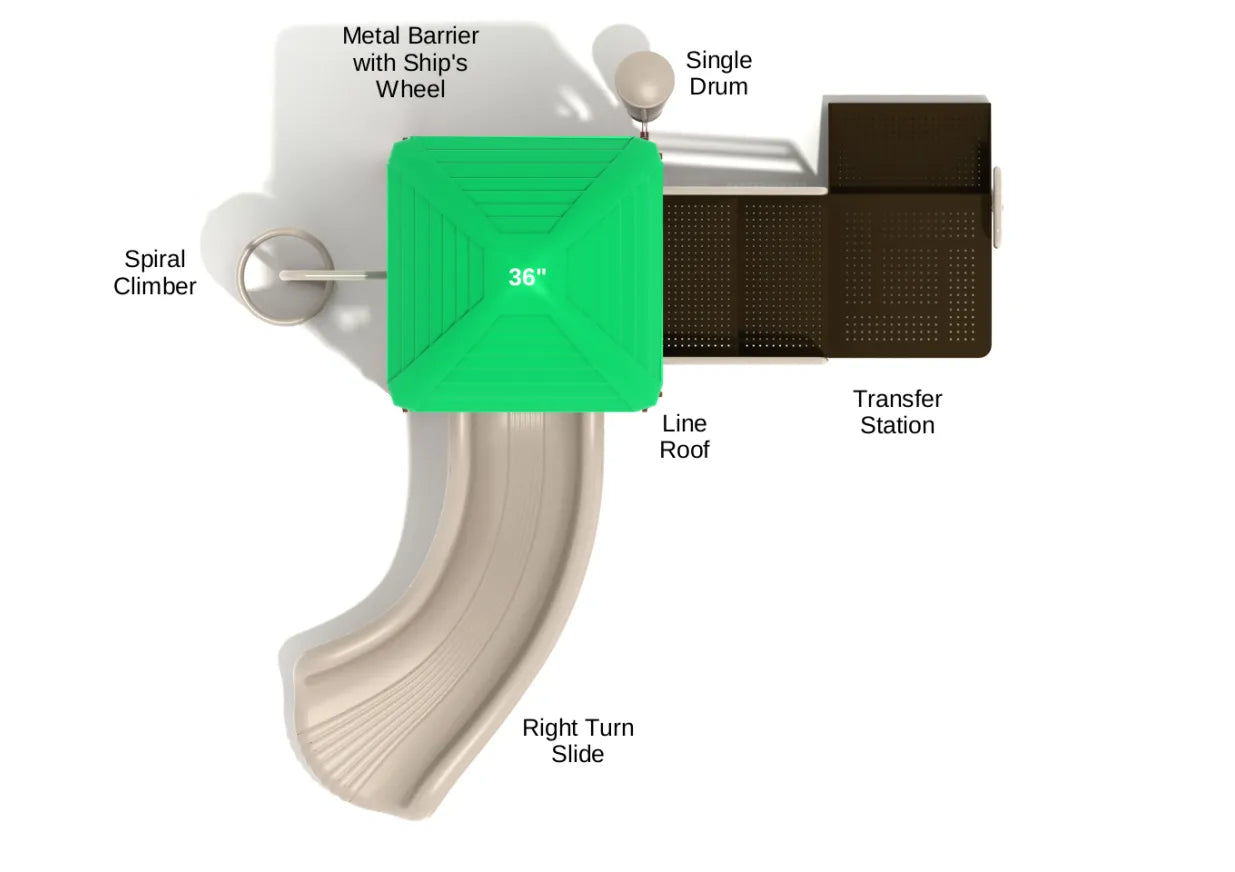 At the top, children are greeted with the Right Turn Slide, which offers a smooth and thrilling ride back to the ground. This slide is the perfect mix of excitement and safety, making it ideal for little ones to enjoy over and over again.