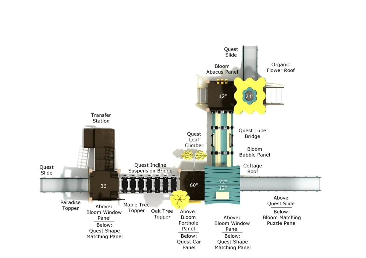 From the whimsical rooflines to the playful color palette, Quaking Aspen feels like a treetop village, inviting roleplay, storytelling, and collaborative adventures. Whether kids are pretending to explore a hidden forest or zooming from tower to tower, every detail is crafted to keep their imagination soaring and their bodies moving.
