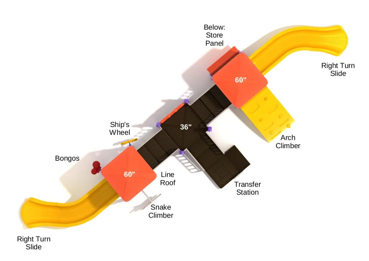 Right Turn Slides: Double the fun with a slide at each end, offering different ways down for every adventure.