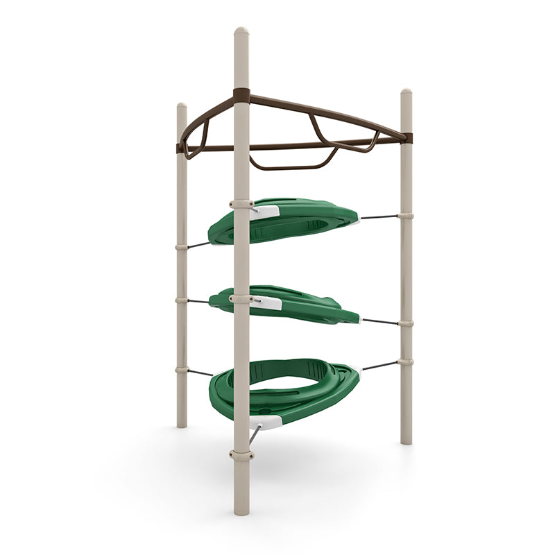 The Shimmy Play System features a series of bars or rungs that allow children to shimmy or climb sideways, promotion upper body strength and coordination.  It allows children to move sideways by gripping and pulling on the bars or rungs, engaging their upper body and core muscles, benefiting the development of upper body strength and provides a fun and challenging activity for children to explore their physical abilities.  The Shimmy Play System adds variety to the playground experience, offering a different type of climbing activity compared to traditional ladders or monkey bars.