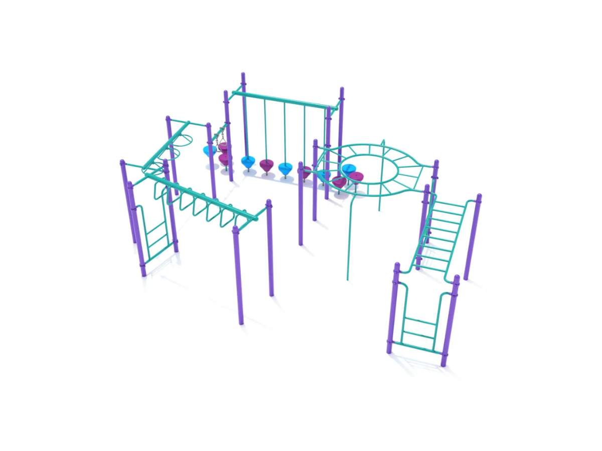 The Terre Haute Play System and Fitness Course is the ultimate playground for kids who love to stay active and build strength, offering a full lineup of exciting obstacles designed to boost upper-body power, coordination, and confidence. Children can kick off their adventure on the Overhead Straight Rung Horizontal Ladder, testing their grip and endurance as they move from rung to rung, before tackling the even more challenging 360 Straight Rung Horizontal Ladder for an added thrill. After conquering the ladders, the Single Row Pebble Bridge provides a lighter transition where kids can catch their breath while still staying engaged. The course then ramps up again with two Swinging Rings leading into the intense Overhead 3 Wheel Swing Ladder, pushing balance and coordination to the next level. The final obstacle—the Overhead Straight Trapezoid Loop Ladder—offers one more exciting test of strength before completing the course. Built for kids who love to push their limits, the Terre Haute Play System promotes fitness, resilience, and nonstop fun in a safe and durable design.